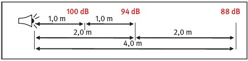 Pegelminderung pro Abstandsverdopplung im Freien.