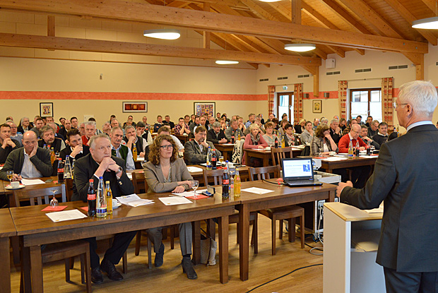 Zur Bezirksversammlung Oberayern sind am 10. Februar 2017 rund 130 Teilnehmer nach Fraunberg gekommen. Wichtigstes Thema aus der aktuellen Verbandsarbeit war die Arbeitssicherheit.
