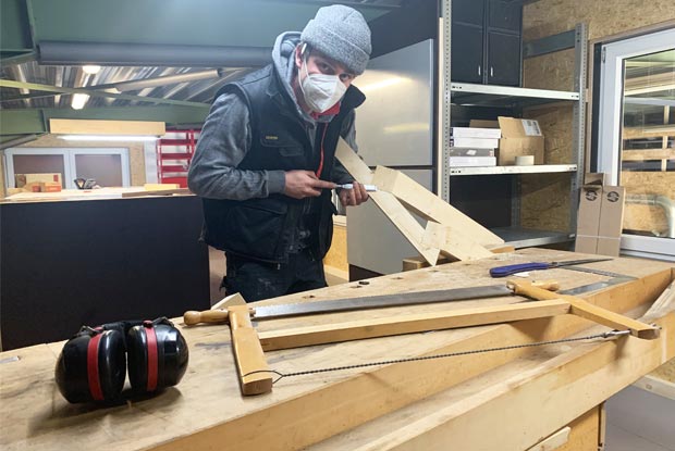 Seit rund einem halben Jahr macht der angehende Zimmerer Maxi Kirr (16) sein BGJ an der Berufsschule Traunstein – in den vergangenen Wochen war Homeschooling angesagt. Seit 23. Februar sind die BGJ-Zimmerer/Zimmerinnen zurück an der BS 1 Traunstein.