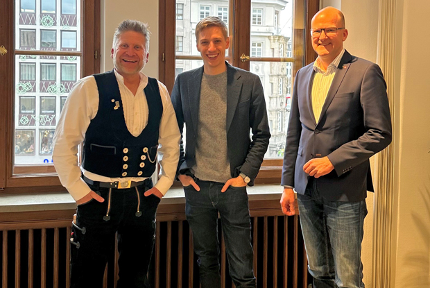 Obermeister Andreas Vollrath und Geschäftsführer Kai Gajewski folgten am 23. Januar 2024 der Einladung des neuen zweiten Bürgermeisters Dominik Krause ins Neue Rathaus. Dabei tauschten sich die Innungsvertreter und der Politiker über die Belange des Zimmererhandwerks aus.